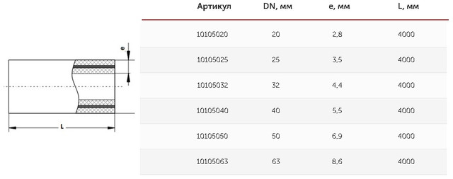 - Форма поставки: отрезки длиной 4 м серая 20-63 мм