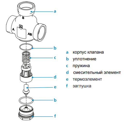 Температурные клапаны ATV изготовлены из латуни и имеют внутреннюю резьбу. В клапане есть термостатический элемент, который регулирует температуру воды, возвращающейся в котел, и поддерживает ее на постоянном минимальном уровне. Номинальная температура клапана определяет температуру открытия, при которой термостатический элемент начинает открывать канал A. Монтажное положение клапанов ATV не является обязательным. Использование клапанов ATV не требует использования дополнительных регулирующих клапанов на соединениях. Конструкция температурных клапанов ATV позволяет заменять термостатический элемент без снятия клапана с установки.