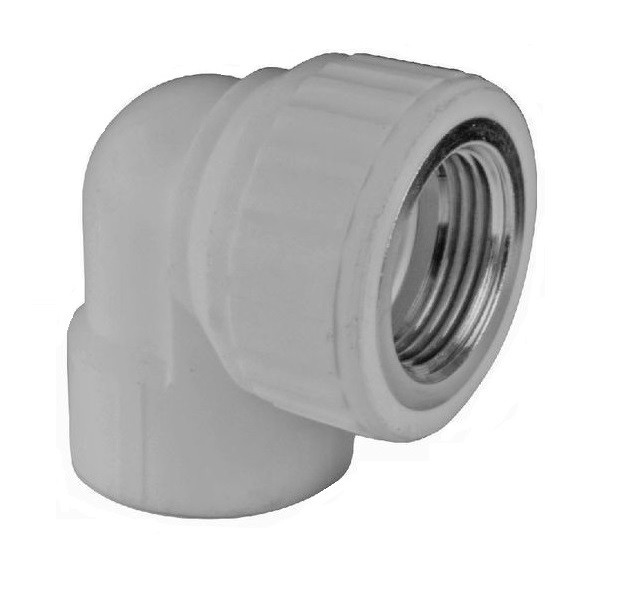 Комбинированный полипропиленовый фитинг. Используется для изменения направления потока и перехода на трубную резьбу. Латунные части производятся методом горячего штампования, пластиковые - методом литья под давлением.